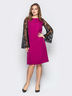Оригинальное платье А-силуэта. Изюминка изделия - широкие сетчатые рукава с флоковым напылением. Застегивается змейкой на спинке.