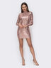 Блестящее платье-мини “на особый случай” из пайеток с воротником-стойкой. Оригинальность модели заключается в открытой спинке. Горловина фиксируется кнопками сзади.. Хорошо подойдёт обладательницам фигуры "песочные часы" и "прямоугольник".