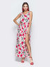 Эффектное платье-макси с фиксированным запахом по спинке. Высокий разрез красиво приоткрывает ножки. Резинка на талии визуально делает модель силуэтной. Отлично подойдет для девушек с фигурой «треугольник».