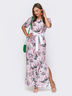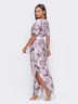 Длинное платье прямого кроя из принтованного софта. Модель отрезная по талии с высокими разрезами по бокам. Тканевый пояс в комплекте.
