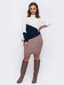 Трехцветное платье прямого кроя с вязаной резинкой по низу.