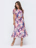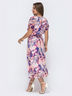 Принтованное платье из невесомого шифона на тонкой трикотажной подкладке. Короткий рукав-реглан с эластичной тесьмой на манжете. Вафельная резинка в поясе создает лёгкий напуск на талии. Застегивается сзади на пуговицу.