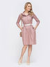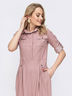 Платье с отрезом по талии, дополнено накладными карманами. Застегивается на пуговицы по полочке.