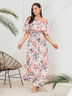 Романтичное платье с воланом на эластичной горловине. Дополнено поясом из основного материала.