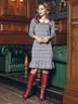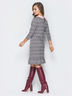 Комфортное платье-трапеция с контрастным отложным воротником. Модель с рукавом ¾ и мягким воланом по низу. Застегивается на пуговицу сзади. Хороший вариант как для стильного делового, так и повседневного образа.