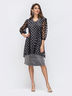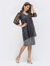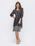 Коктейльное платье приталенного силуэта из блестящего люрекса. Сверху модель дополнена тонким слоем фатиновой сетки в крупный горох. Хорошо подойдёт обладательницам типа фигуры «прямоугольник», «песочные часы».