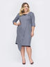 Лаконичное платье приталенного силуэта из костюмной ткани с кружевом. Изделие с асимметричным низом и глубоким V-образным вырезом на спинке. Хорошо скроет незначительные нюансы фигуры и подчеркнет ноги.