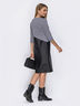 Повседневное платье, выполненное из комбинации материалов. Лиф изделия дополнен контрастными вставками из искусственной кожи с фурнитурой. Подойдет обладательницам типов фигуры «песочные часы», «груша», «прямоугольник».