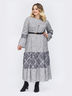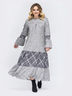 Повседневное платье свободного кроя из трикотажа со вставками геометрического рисунка. Пояс в комплект не входит. Фасон и особенности ткани помогут скрыть незначительные нюансы фигуры.