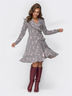 Женственное трикотажное платье на запах. Модель декорирована мягкой оборкой по полочке и низу. Хорошо подойдёт обладательницам любого типа фигуры.