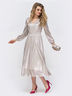 Коктейльное платье из трикотажа с V-образным вырезом горловины. Модель отрезная по линии талии с расклешенной юбкой. Силуэтности изделию добавляет эластичная деталь в поясе. Подойдет для типа фигуры «песочные часы», «прямоугольник» и «груша».