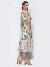 Невесомое платье на запах из софтовой принтованной ткани. Оборка по линии груди и по низу. Модель подойдет обладательницам типов фигуры «прямоугольник» и «песочные часы».
