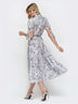 Нежное платье из софта с цветочным принтом. Модель с эластичной деталью в поясе и с воротником «аскот». Короткие рукава дополнены завязками.