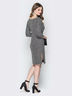 Строгое офисное платье из фактурного букле. Горловина «лодочка» подчеркивает ключицы. На полочке расположен накладной карман с розой. Разрезы по бокам изделия. Подойдет любому типу фигуры.