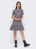 Платье из костюмной ткани свободного кроя. Модель застегивается на пуговицу по спинке.