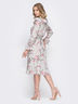 Летящее платье в нежный цветочный принт с оборками. Талия и горловина выполнены резинкой. На полочке изделие декорировано рядом пуговиц. Пояс в комплект не входит.