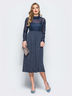 Теплое платье-миди. Модель с чуть завышенной линией по талии с резинкой под грудью. Рукава и кокетка выполнены из триекотажа-травка. Застегивается на пуговицу сзади. Подойдет для девушек с фигурой яблоко.