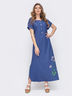 Льняное платье-макси с вышивкой по низу. Застегивается на пуговицы по планке. Изделие со вшитими завязками по бокам.