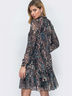 Расклешенное платье из воздушного шифона с широким воланом по низу. Воротник выполнен рюшей, регулируется завязками. В манжете предусмотрена широкая эластичная деталь.