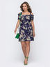 Платье свободного кроя из принтованного софта с бретелями. Модель с открытыми плечами, рукава выполнены воланами с рюшью. Пояс в комплекте для придания изделию силуэтности.
