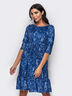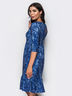 Практичное трикотажное платье с рукавами, длиною 3/4. Дополнено изделие воланом по низу и вырезом на спинке. Застегивается на пуговицу сзади.