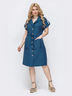 Однотонное платье-рубашка с накладными карманами. Пояс выполнен кулиской.