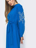 Длинное расклешенное платье с флористической вышивкой на рукавах. Застегивается сзади на пуговицы. Пояс в комплекте.