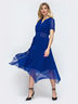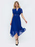 Женственное платье из воздушного шифона с вышивкой плюмети. Модель с коротким рукавом реглан и юбкой с асимметричным подолом. Отрезная талия присобрана на вафельную резинку. Для комфортной носки в изделии предусмотрена тонкая трикотажная подкладка.