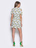 Легкое платье-мини с открытыми плечами и оборкой на рукавах. Для удобства на полочке выполнены накладные карманы. Талию подчеркивает пояс из основной ткани. Застежек не предусмотрено.