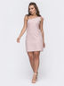 Приталенное платье пудрового цвета с асимметричным верхом: с одной стороны на тонкой бретельке, а с другой – завязывается на шифоновые ленты, переходящие в бант. Без застёжек.
