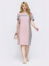 Платье приталенного силуэта в стиле color-block с коротким рукавом. Застёгивается на молнию сзади.