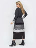 Длинное трикотажное платье с контрастной вставкой на подоле, дополненной мягким кружевом. В изделии предусмотрены подплечники. Сзади разрез.
