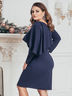 Силуэтное платье длины миди из креп-дайвинга с акцентом на талии. Оригинальности и женственности модели добавляет широкий волан из основного материала на плече, плавно переходящий к лифу и на спинку изделия.