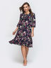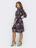 Платье из легкого поплина в мелкий цветочный принт. Изделие с рукавом ¾ и широким воланом по низу. Горловина фиксируется завязками.