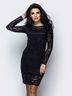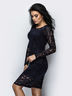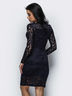 Гипюровое платье футляр с длинными рукавами. Вырез горловины круглый. Застегивается на молнию по спинке.