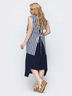 Стильное расклешенное платье без рукавов в вертикальную полосу. Полочка в изделии удлинена. С помощью тонкого пояса в комплекте можно подчеркнуть талию.