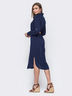 Лёгкое платье-рубашка прямого кроя из штапеля. Модель с закругленным подолом и шлевками на рукавах. Тканевый пояс в комплекте.