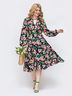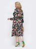 Пёстрое платье в крупный цветочный принт с перфорацией у горловины. Модель с широкими рукавами, собранными на манжетах. Силуэтности изделию придаёт эластичная деталь в поясе.