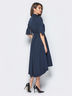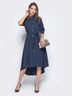 Платье-рубашка отрезное по талии с удлиненной спинкой, отложным воротником и рукавами длиною 3/4. Застегивается изделие на пуговицы по всей длине. Комплектуется поясом из основной ткани.