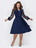 Вельветовое платье расклешенного кроя с рядом декоративных пуговиц на лифе. Пышная юбка выполнена со складками. Рукава из сетки с флоковым напылением в крупный «горох» Застегивается на молнию на спинке. Пояс в комплекте.