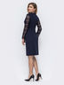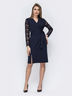 Платье из костюмной ткани «Фукра» на фиксированный запах с вшитым поясом. Рукава выполнены из ажурного кружева. Застегивается на молнию на спинке.