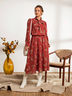 Платье в романтическом стиле с воротником-стойкой, переходящим в красивый бант. Предусмотрена эластичная деталь в поясе и манжетах. Пояс в комплект не входит. Изделие хорошо подойдёт обладательницам фигуры "груша" и "яблоко".