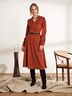 Лаконичное платье из плотного вельвета с воротником-стойкой. Модель отрезная по линии талии, с функциональными пуговицами на полочке. Застегивается на молнию сбоку. Пояс в комплект не входит. Отлично подойдёт обладательницам фигуры «прямоугольник», «песочные часы» и «груша».
