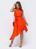 Стильное платье из льна «жатки» на узких регулируемых бретелях с американской проймой. Расклешенная юбка с асимметричным подолом, дополнена широким воланом. В поясе предусмотрена эластичная деталь. Тканевый пояс в комплекте.