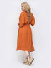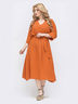 Расклешённое платье с V-образным вырезом горловины и рукавом «летучая мышь». Модель с эластичной деталью в поясе декорирована пуговицами по полочке. Тканевый пояс в комплекте.