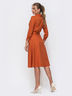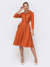 Отрезное по талии платье классического кроя с расклешенной юбкой. Модель с отложным воротником и функциональной планкой с пуговицами на полочке.