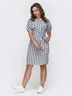 Полосатое платье-рубашка. Модель с накладными карманами по полочке. Пояс из основной ткани в комплекте.