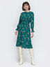 Платье в прованском стиле из мягкой костюмной ткани. Широкий эластичный пояс визуально сужает талию. Втачной длинный рукав с высоким манжетом на эластичной резинке прекрасно дополняет образ.