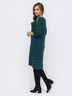 Лаконичное платье с удлинённой спинкой из трикотажа с нитью люрекса. Модель декорирована пуговицами на плечах и по бокам. Хорошо подойдёт обладательницам фигуры типа "прямоугольник", "песочные часы".