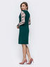 Платье из трикотажа «Фукра» с воротником-хомутом и рукавами из набивного шифона.